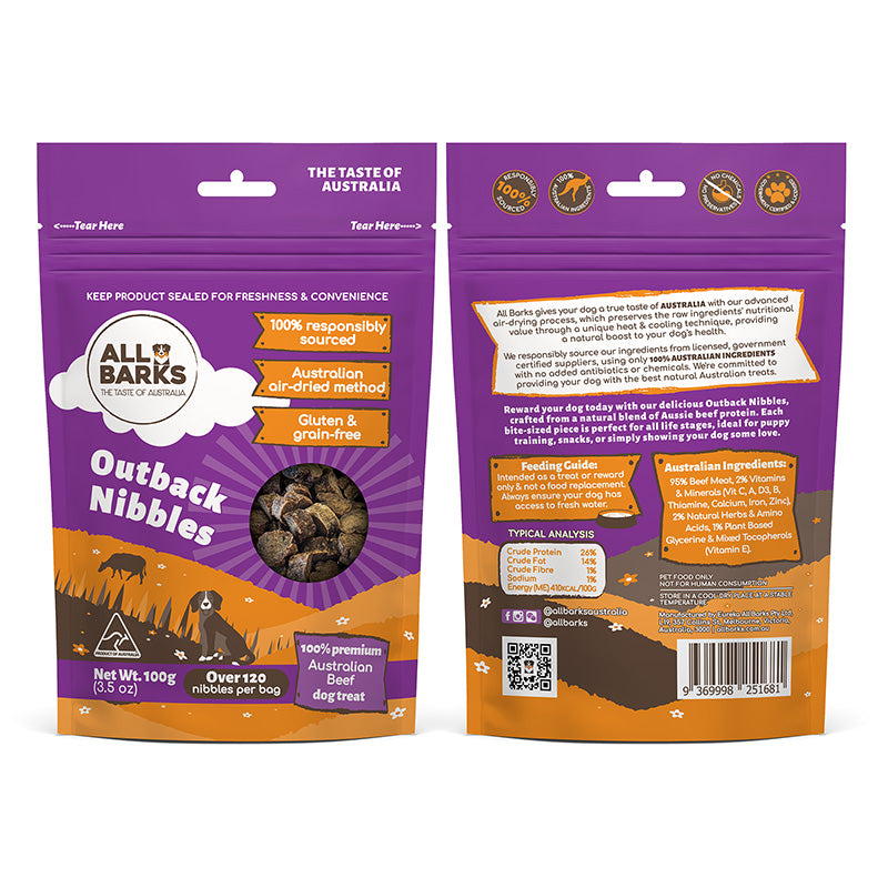 Reward your dog today with our delicious Outback Nibbles, crafted from a natural blend of Aussie beef protein.